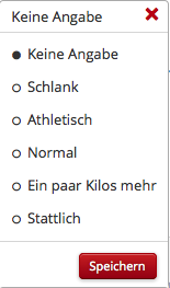 Zur Info: Auswahlmöglichkeiten bei der Figur sind: schlank, athletisch/trainiert, normal, ein paar Pfunde zu viel, mollig, deutlich übergewichtig. Auswahlmöglichkeiten bei «Über ihr Äusseres» sind: Andere bezeichnen Sie als: äusserst attraktiv, sehr attraktiv, attraktiv, sympathisch, dazu möchte ich nichts sagen.